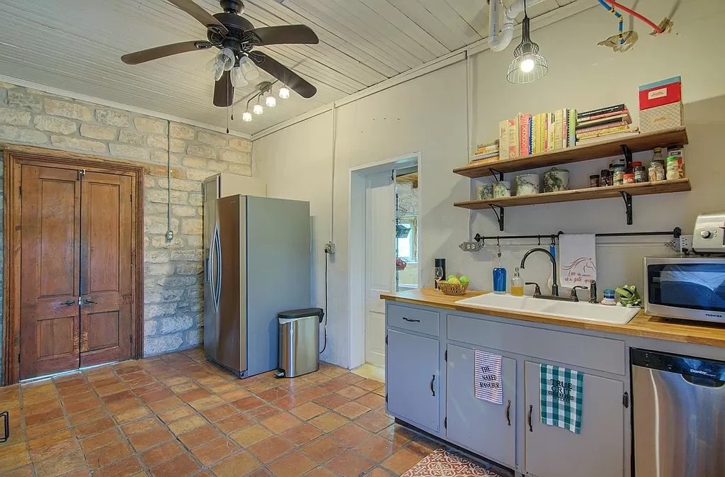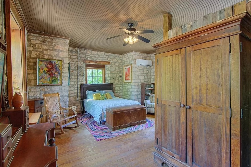 The property's history includes a stagecoach stop and inn, a post office, a general store, and a blacksmith shop, adding to its charm and character. Being one of only 40 stagecoach inns in the nation and the only stable in Texas to be listed on the National Register of Historic Places speaks to this property’s significance and the efforts to preserve its historical integrity. The 18” walls allow for natural insulation, and the lovingly maintained home retains its unique historical features.